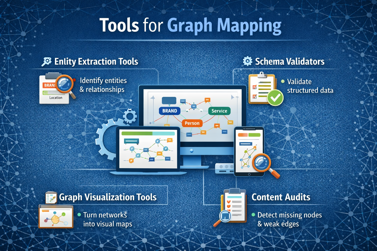 You don’t need enterprise-level infrastructure to start mapping a semantic network AIO. Several tools help visualize and validate entity relationships.