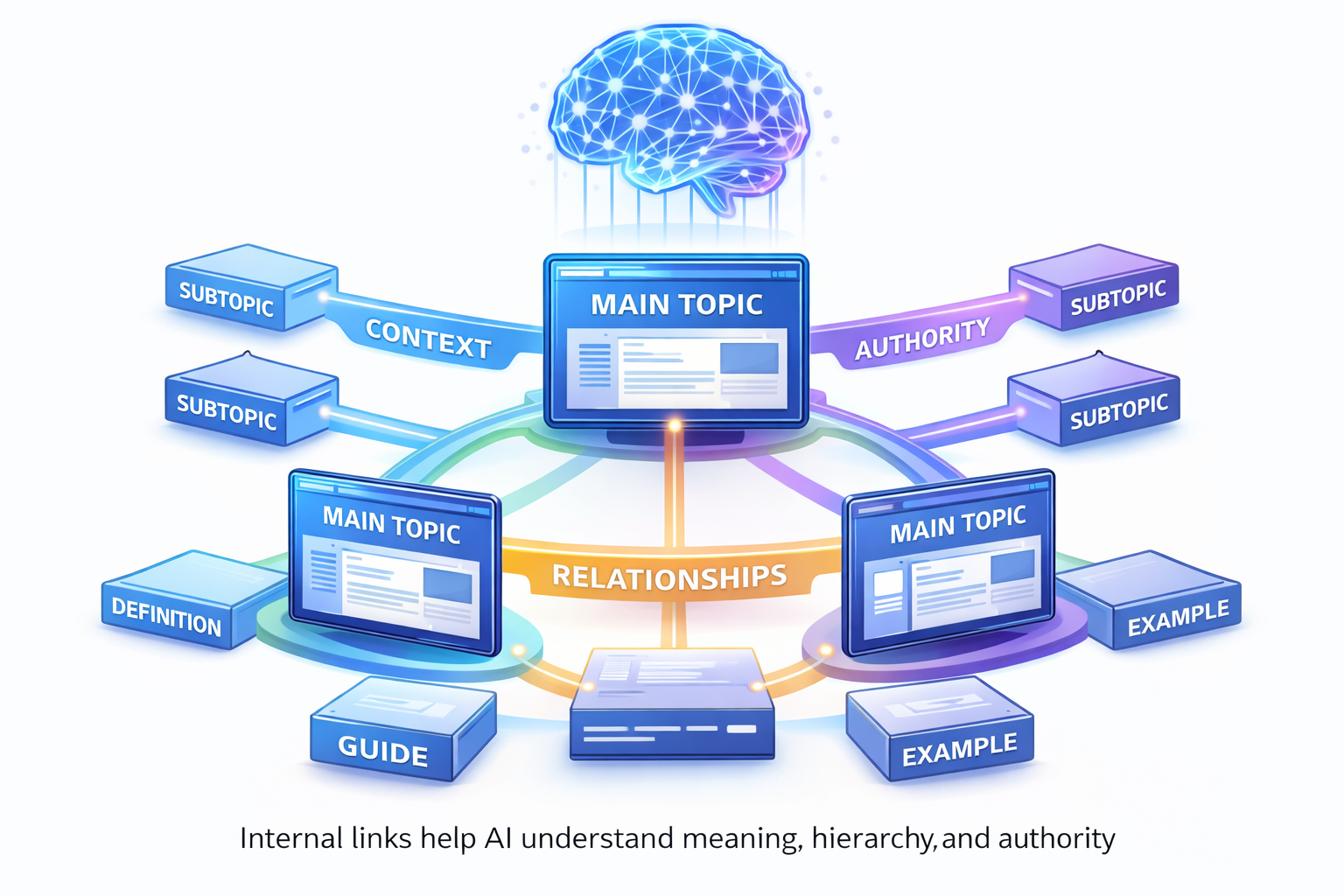 From an AI perspective, internal links act like training signals. They tell the system, “This page explains the core idea,” or “This page expands on that concept.”